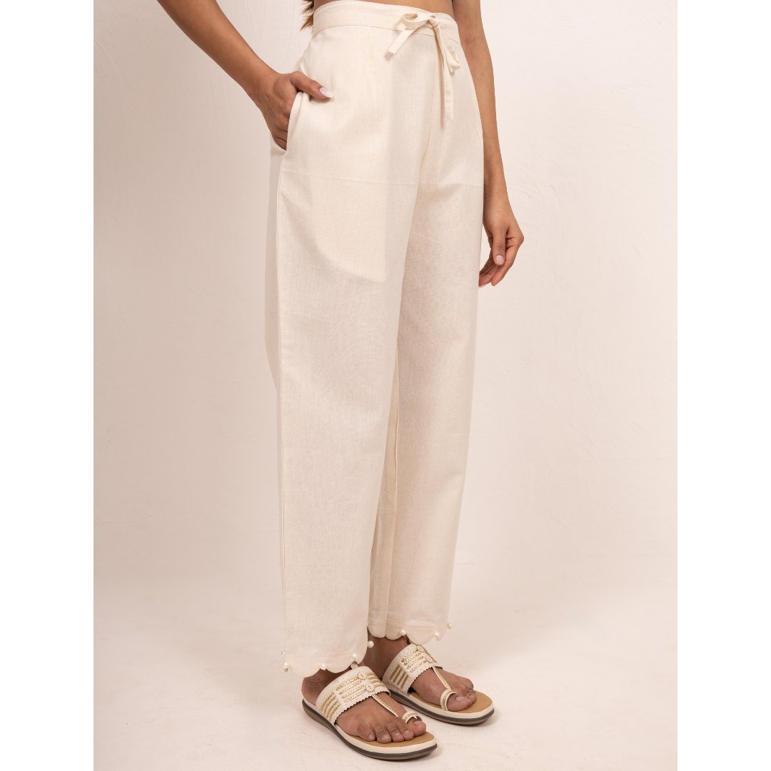 '' Amaryllis '' Biege Cotton- Linen Scalloped Pants